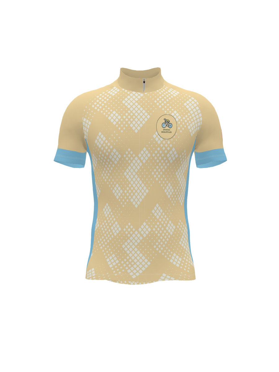 Dar kesim bisiklet forması, aerodinamik performans için vücuda oturan bir tasarıma sahiptir.