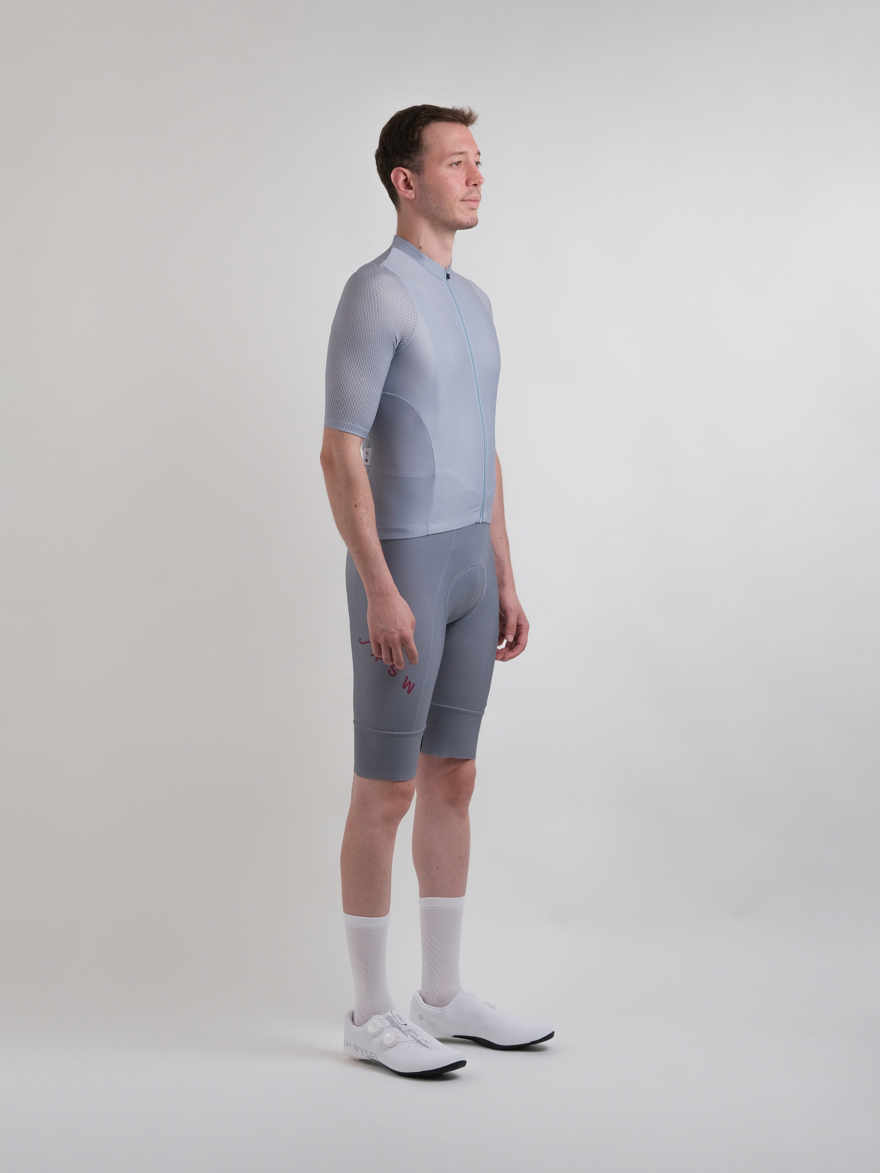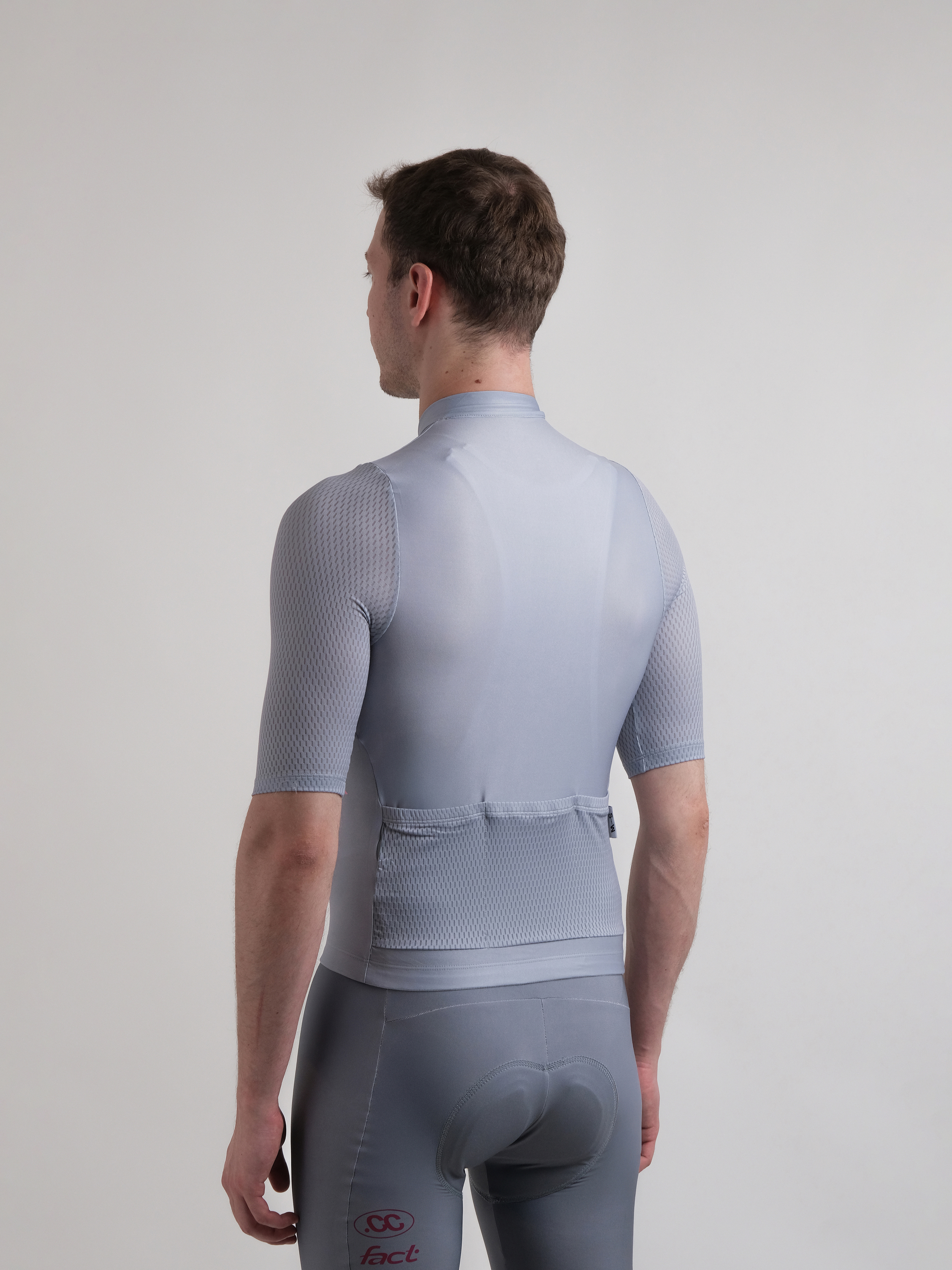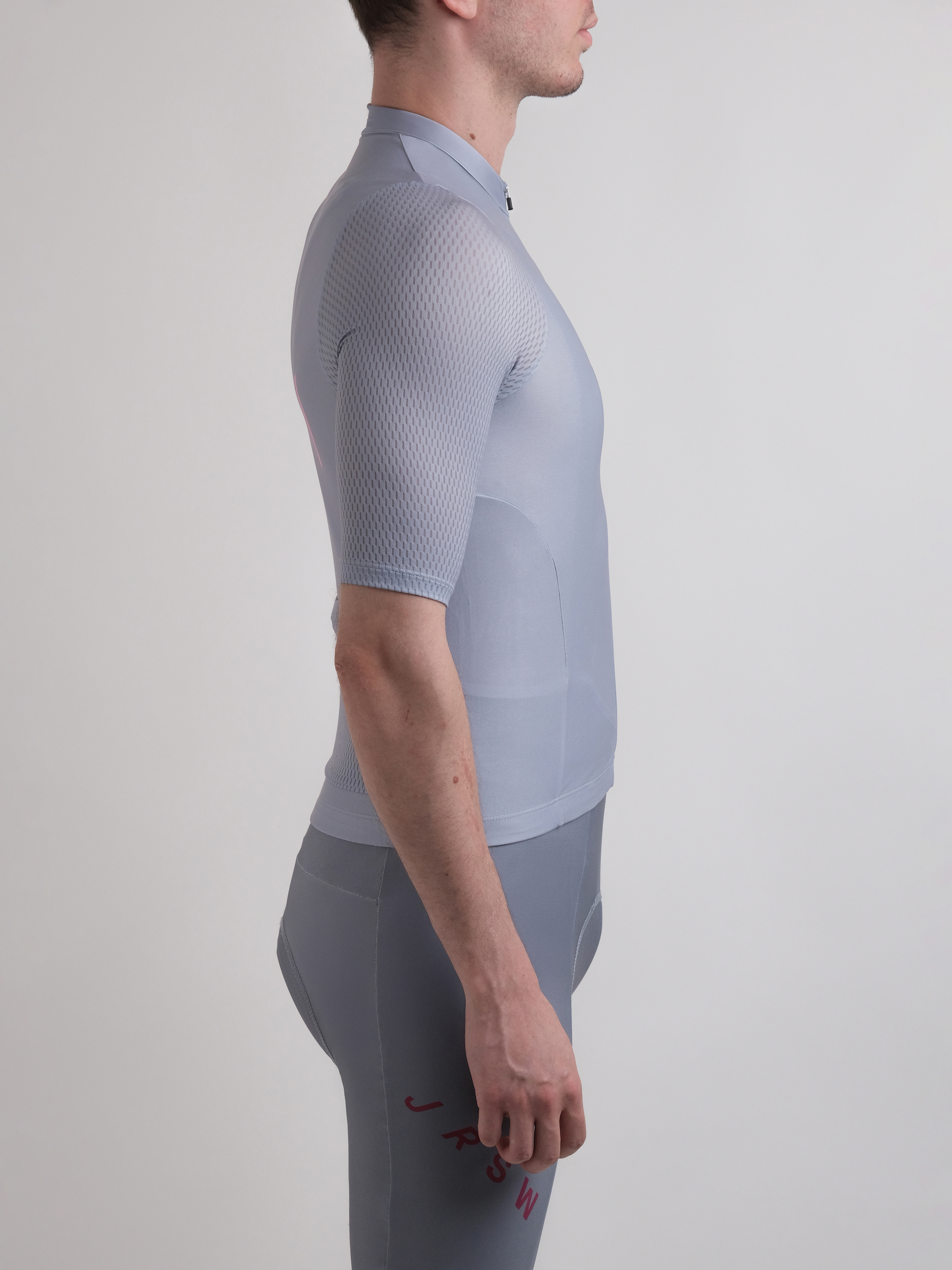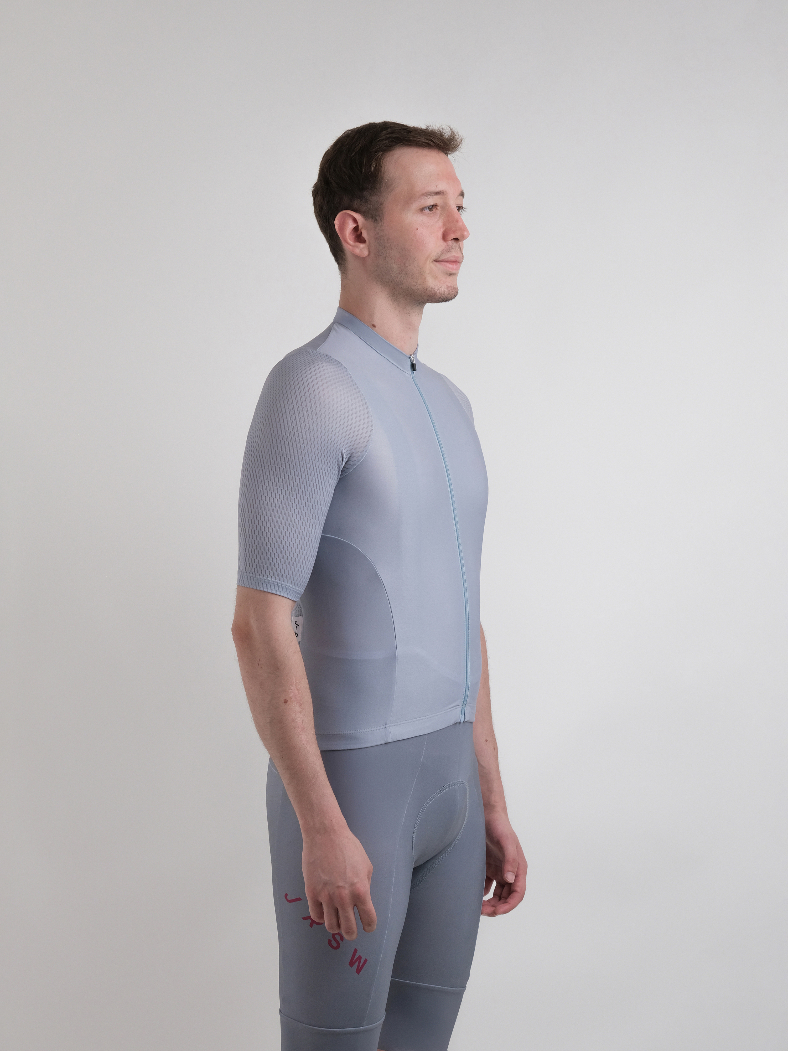 Dar kesim bisiklet forması, aerodinamik performans için vücuda oturan bir tasarıma sahiptir.